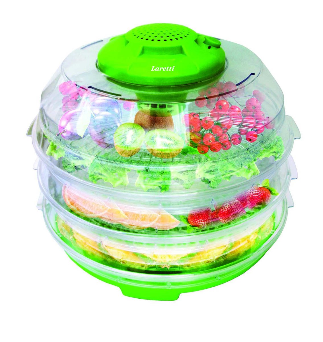 Шестиярусная сушилка для продуктов с современным дизайном, с функцией запоминания времени и автоматическим выключением.